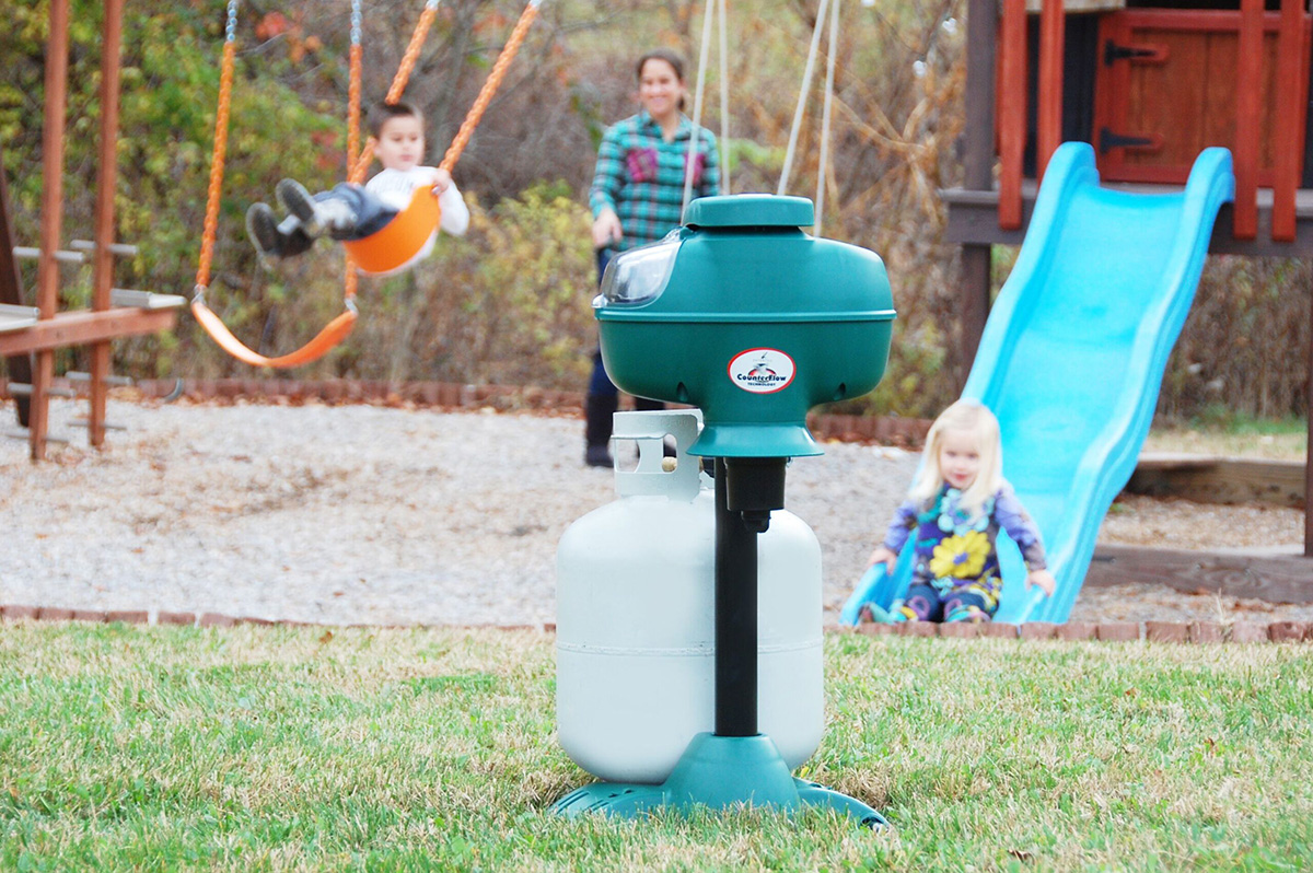 Lokker: Maskinen sprer en fargeløs og luktfri strøm av karbondioksid (det naturlige stoffet mennesker utånder) og dette tiltrekker seg mygg, knott og andre blodsugende insekter.